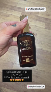 Athena blends argan oil with lightweight conditioning agents that create instant shine, smoothness and softness — without the heaviness of pure oils. This makes it perfect as a quick styling serum, finisher, or daily hair-smoothing treatment.